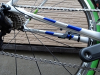 リヤディレイラーからのコードにワイヤレスユニットを中継しています。