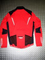 乗車時の前傾姿勢を考慮した立体設計で、背中が出ないように長めになっています。袖もまた腕を前方に出した姿勢に合わせて立体パターンを取り入れています。